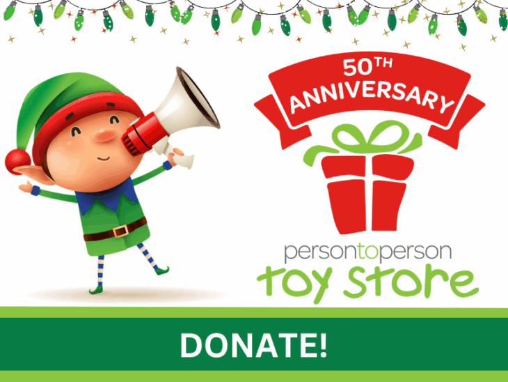 There are many creative ways to host your own Toy Drive or fundraiser! Host a holiday get-together and ask guests to bring toys instead of food. Engage your children with a bake sale and donate proceeds to P2P’s Holiday Toy Store. Set up a collection box in your neighborhood or organize a tag sale and publicize it widely in your neighborhood.