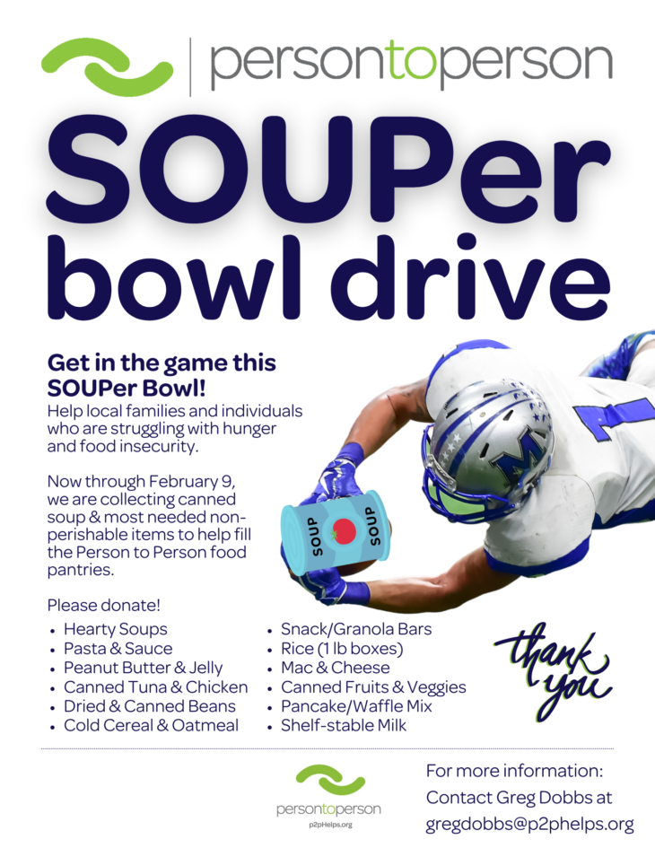 Join the excitement of the SOUPer Bowl and make a winning play for your community! Regardless of your team’s performance on the field, you can score big by participating in the P2P SOUPer Bowl, a charitable initiative aimed at filling the P2P food pantries.