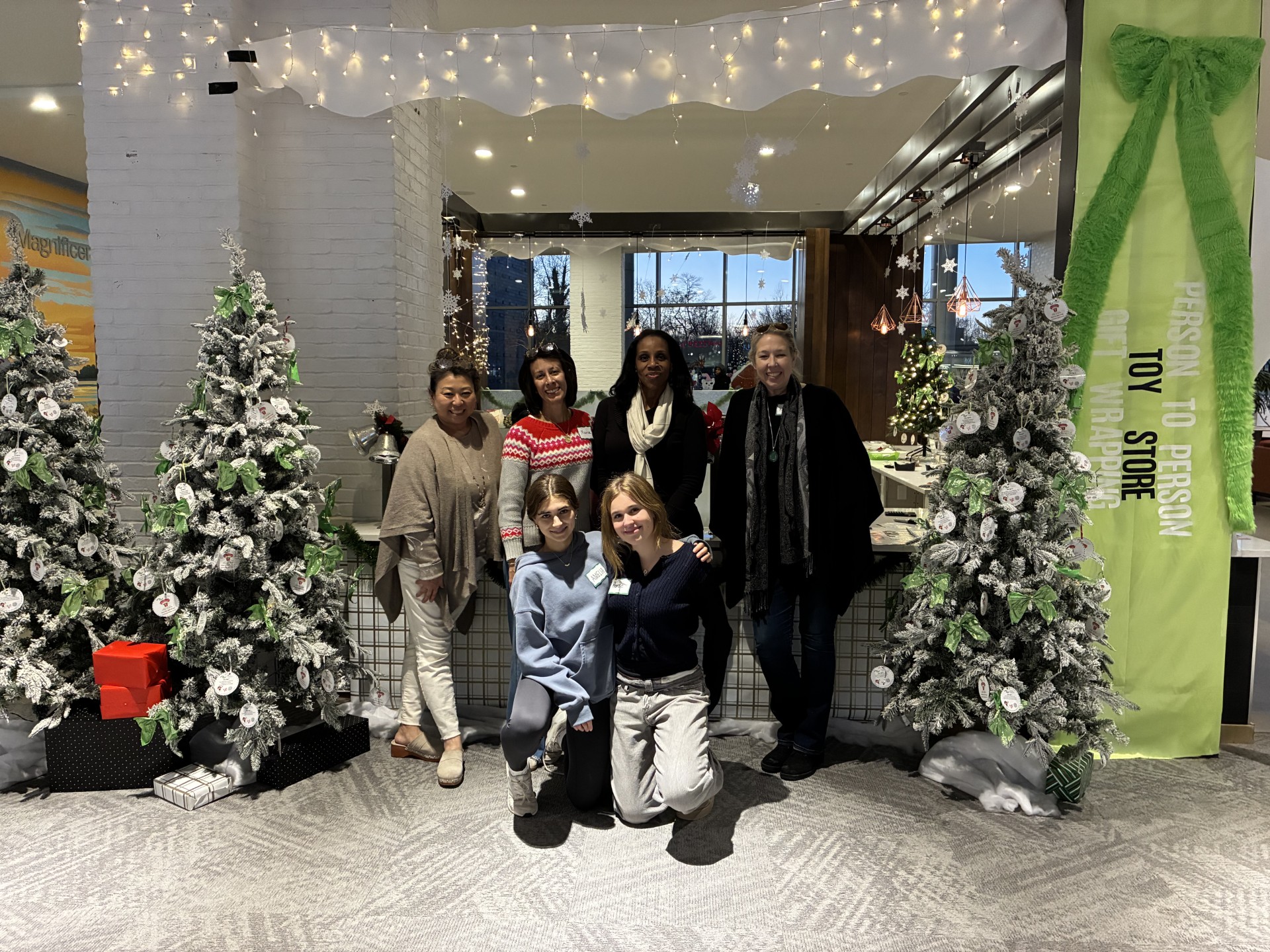 Juri, Rebecca Wilson, Nancy with volunteers SoNo gift wrapping 2025