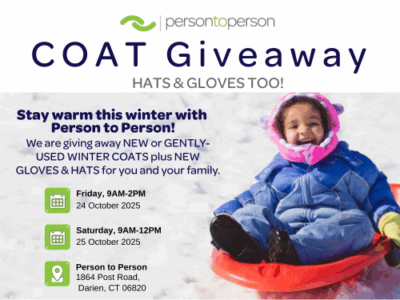 Person to Person is hosting a winter coat drive ahead of our Coat Giveaway on October 24-25. We are collecting new or gently-used winter coats, new hats, new gloves and…